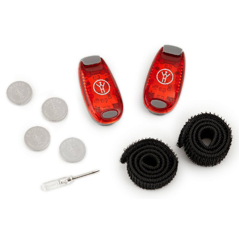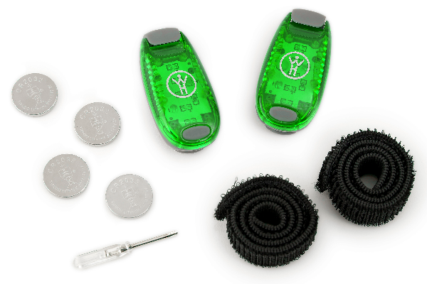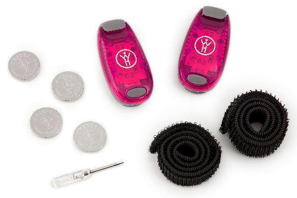 2 lights in mulitple eye-catching colors. Velcro straps & extra batteries included.